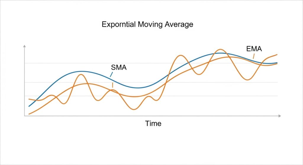 比較イメージ: SMA=安定した流れ、EMA=敏感に反応。