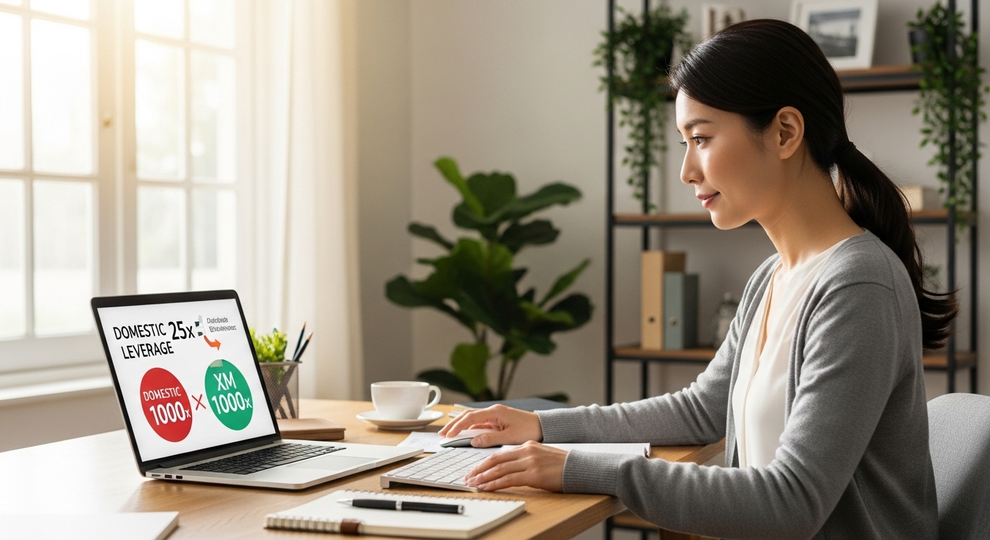 国内25倍とXM最大1000倍の違いを初心者向けに解説。必要証拠金の計算式・具体例・安全なロット管理まで、練習の進め方がわかります。